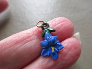 ANTIQUE VINTAGE ART DECO LUCITE PLASTIC SWISS GENTIAN FLOWER FOB CHARM PENDANT