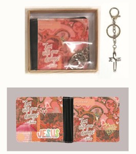Christian Wallet &Cross Keychain Gift Set Anime Jesus the Shepherd Hold His lamb